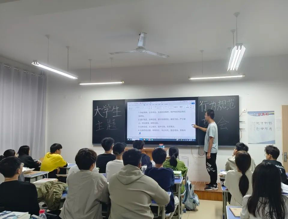 在班会中,各班班委以“老员工行为规范准则”为标准向同学们发起号召,班委们提出:“要成为一名合格的老员工,最基本的就是要养成良好的行为习惯”。同学们积极发表看法,讨论“如何成为符合新时代要求的老员工”,并认真进行自省,同时也表示,将会在未来的学习生活中不断改正自身问题,成长为一名合格的当代老员工。