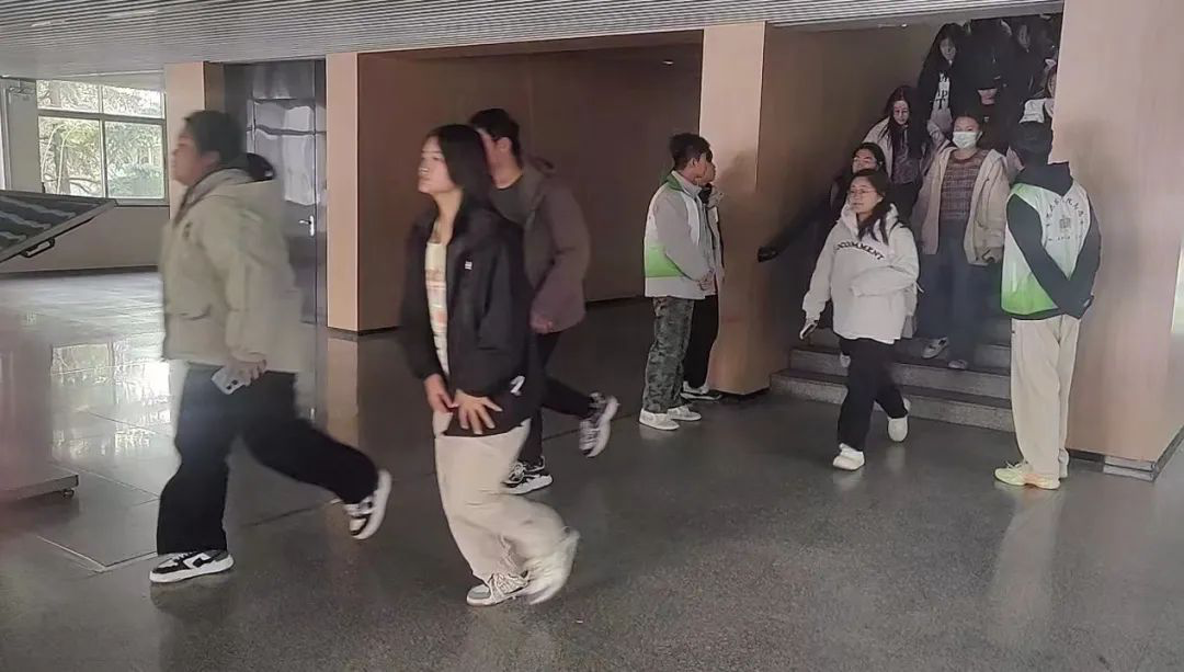 为确保演练快速有效,在演练前,制定了全面细致的演练方案,明确了各岗位的人员安排、疏散路线以及演练的具体要求。随着警报声的响起,防踩踏演练正式开始。疏散人员立即就位,同学们在疏散人员的指引下按照指定路线有序向各个安全出口撤离。演练过程中,每个同学都紧张又不失秩序,班级与班级之间有序,保持高度自觉演练危机意识,做到不说话、不嬉闹,迅速撤离到指定安全区域后,各班级负责人及时清点人数,确保无一人遗漏。整个演练过程紧张有序、安全迅速,达到了演练目的和预期效果。