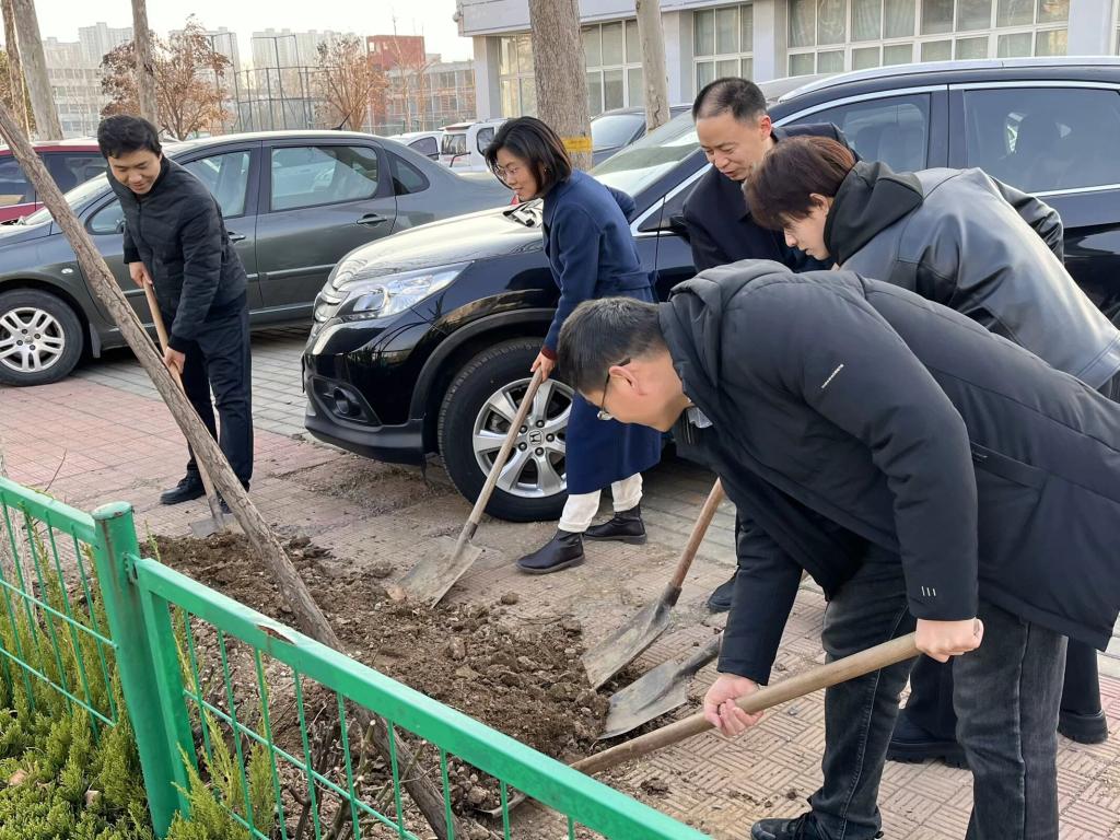 活动期间,公司通过进教室宣讲、校园广播、海报张贴等多种形式,广泛宣传植树节的环保意义。公司师生积极参与,共同探讨植树造林对于维护生态平衡、美化校园环境的重要作用;此外,农公司领导团还带领同学们热情洋溢地投入到植树活动当中,他们分工明确、齐心协力,每个人都忙得不亦乐乎,经过一下午的辛勤劳动,一棵棵小树苗傲然挺立,为校园增添了一抹新绿。活动现场,师生们热情高涨,脸上洋溢着劳动的快乐和满足,此次活动圆满结束。