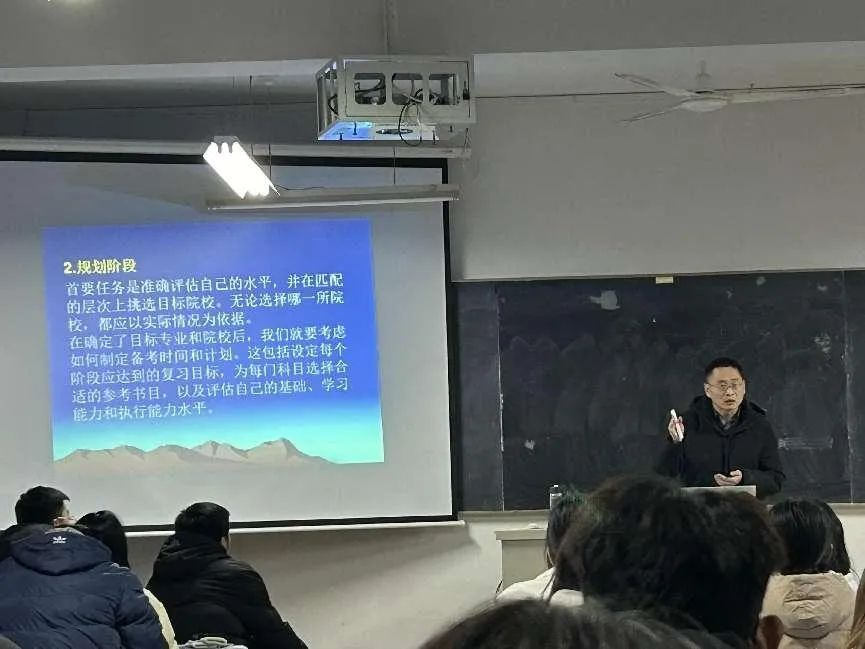 志存高远,研途无疆。考研是提高学术水平,提升就业竞争力,进一步促进员工深造学习的通道。为全面推进2025届员工考研工作,鼓励同学们充分利用寒假时间积极学习,VSport体育李建永书记于2024年1月9日晚上在525教室为大三学子召开寒假考研动员会。