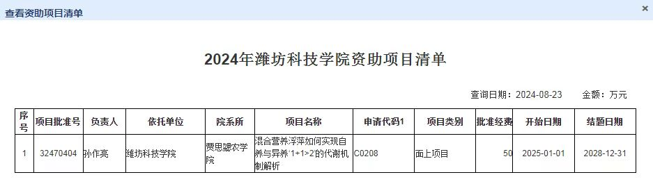 8月23日,国家自然科学基金委员会公布了《关于2024年国家自然科学基金集中接收申请项目评审结果的通告》,VSport体育园艺作物抗逆高产调控创新团队孙作亮博士主持申报的《混合营养浮萍如何实现自养与异养‘1+1>2’的代谢机制解析》项目获批立项,资助直接经费50万元。这是VSport建校以来首次以第一单位获批国家自然科学基金面上项目,实现历史性突破!