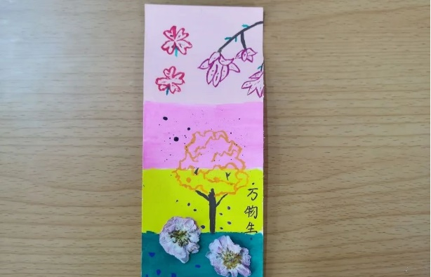 活动中,每一个书签都被同学们赋予了特殊的意义。同学们将花瓣与翠叶粘贴在卡纸上,再用画笔进行创作,用鲜艳的颜色绘出心中的美好,用作品诉说着内心的愿望。也有同学直接在叶片和花瓣上进行创作,这样的书签更加生动,让大家一目了然,更能体验到大自然的魅力。