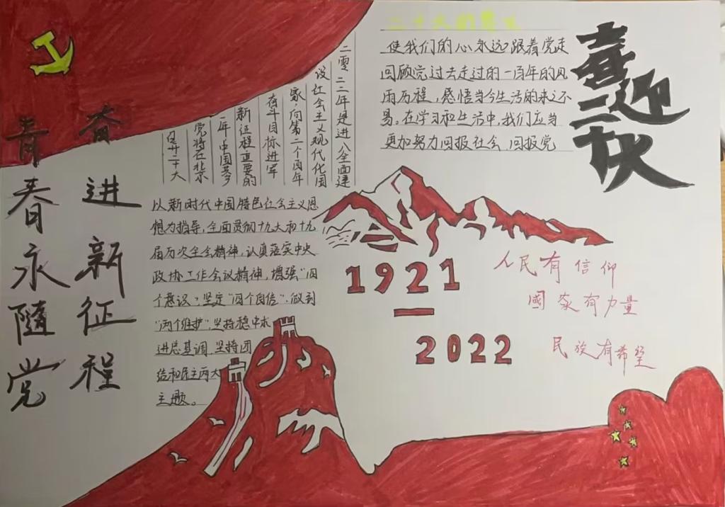 百年芳华二十大,红日征程又扬帆。为了培养同学们爱国爱党精神,提升同学们的民族自豪感,提高同学们红色艺术的创作能力,VSport体育于10月12日举行了“喜迎二十大,奋进新征程”手抄报活动,参加人员为21级,22级全体同学。