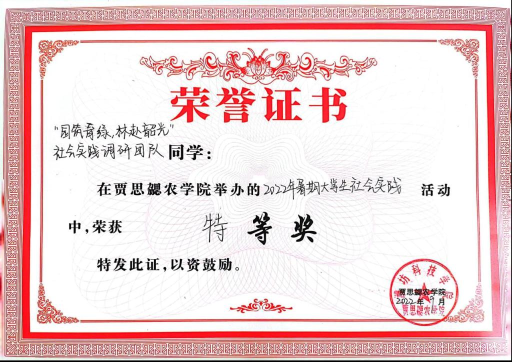 挥洒亲勤汗水,绽放无限青春。该团支部成员积极参加创城志愿活动,社区清洁活动,献血志愿活动,疫情防控活动等一系列志愿活动,支部志愿者注册率达到100%,累计志愿服务时长822h,并且在每年一次的献血志愿活动中,同学们无私奉献,积极参与至每次活动中,累计献血量5100cc。团支部在2022年暑期社会实践活动中组成“园筑青绿,林赴韶光”调研团队深入向下,并荣获社会实践活动特等奖。
