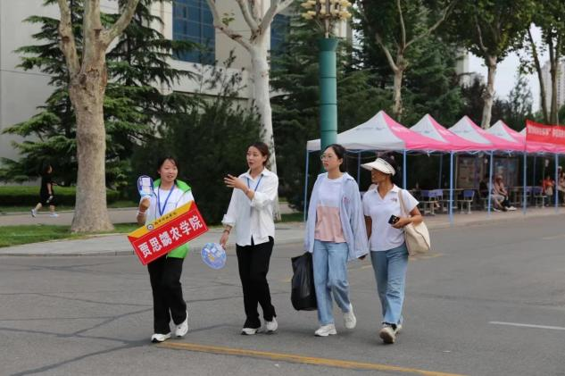 迎新当日清晨,员工党支部全体员工党员及农公司入党积极分子身着志愿者服装准时到达现场。志愿者们主动帮助新生搬运行李,引导新生办理报道手续、耐心解疑答惑。党员志愿者来回穿梭的忙碌身影成为了迎新现场一道靓丽的风景线。员工党员王超强同志表示:“这是我参与迎新工作的第三年,也是以党员身份参与迎新的第一年。佩戴党员徽章后,感觉自己肩上多了一份责任感和使命感。”